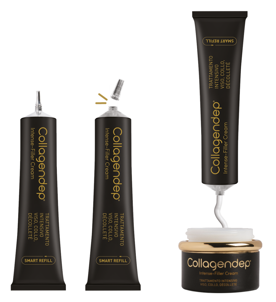 Gli Smart Refill Collagendep incarnano perfettamente l’essenza di un formato ricarica sostenibile: alta qualità, praticità d’uso e una ridotta impronta ecologica, per un futuro più consapevole e responsabile.