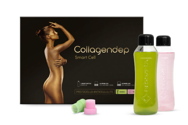 Cofanetto da 24 drink cap Collagendep Dren + 48 drink cap Collagendep Cell + Erbozeta® Smart Bottle